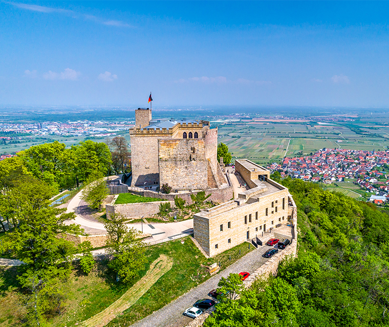 Die Lage unseres Hauses verbindet zwei Landschaften: den Naturpark Pfälzerwald und die weite Rheinebene. Wanderwege führen hinauf zu Aussichtspunkten rund um das Hambacher Schloss, Radwege begleiten die Deutsche Weinstraße durch Weinberge und kleine Winzerdörfer.